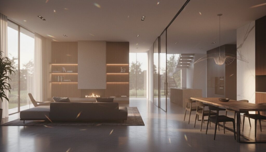 The video often includes carefully chosen camera angles, realistic shadows and reflections, atmospheric lighting, and background music that reinforces the mood. The experience feels similar to watching a professionally shot property film, but it is generated entirely through advanced 3D rendering.
