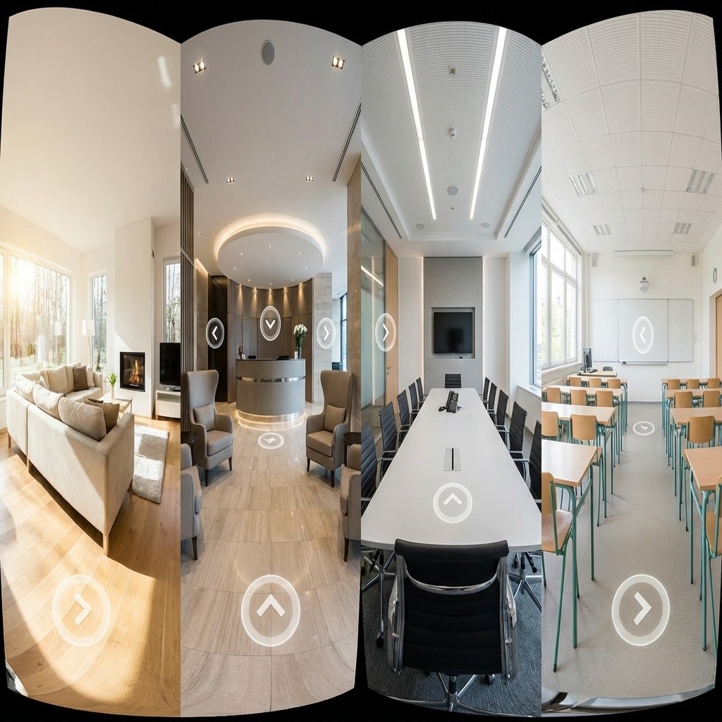 A Virtual Tour 360 is created using high-resolution 360-degree photographs captured at multiple points inside a space. These images are then stitched together to form a seamless, interactive environment where the viewer can look up, down, and all around, just as they would in real life. Users can navigate between different rooms or areas using hotspots, creating a smooth and intuitive exploration experience. Since it uses actual photographs, the result is a true-to-reality representation of the space.