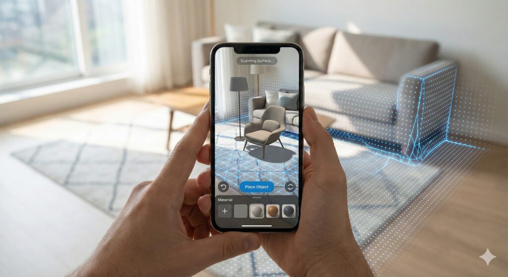 AR allows people to see and interact with a future design inside their real environment. This removes guesswork and helps clients understand: