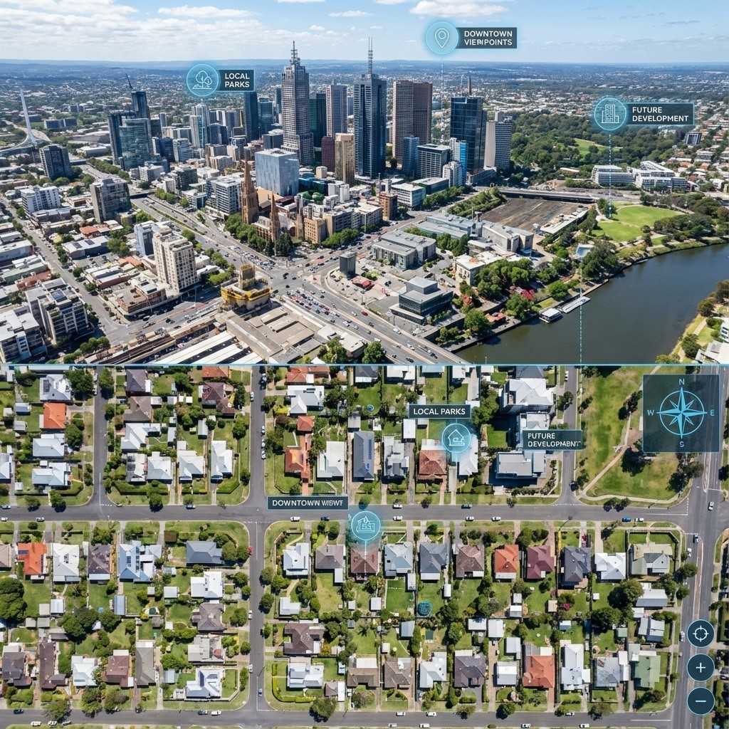 A drone interactive tour is a digital experience built using actual drone footage captured from a completed property or development site. Unlike 3D simulations, this format uses real visuals that show the property exactly as it exists. The drone footage is enhanced with interactive elements that allow users to move between different aerial viewpoints, zoom in and out, explore amenities, and understand the overall layout with clarity.